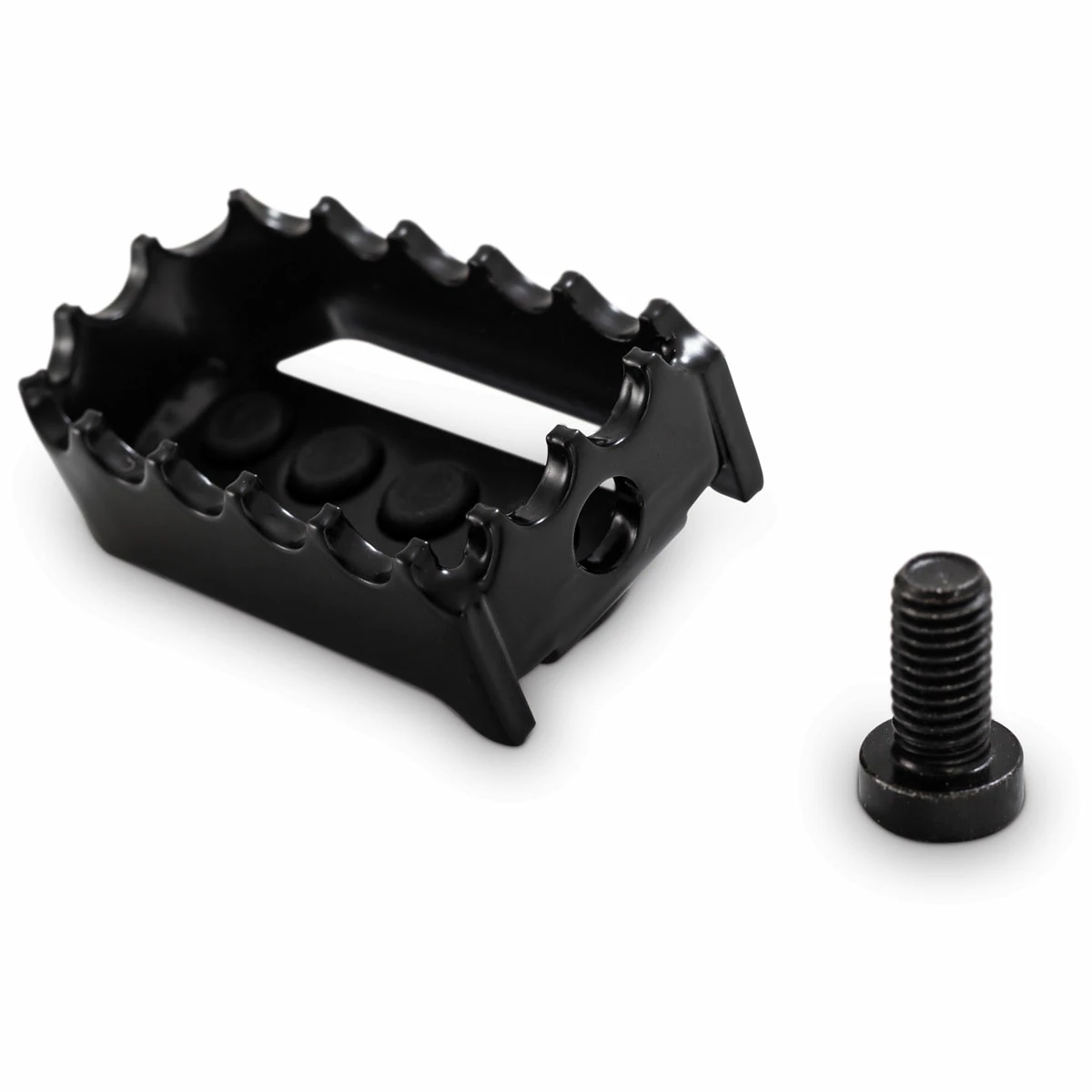 The ideal match to keep the MX Style theme from Burly Brand going on your street machine! Inspired by motocross applications and brought to life for your street bike. These toe pegs just as the MX style foot pegs feature a serrated edge and rubber pad for impressive boot protection.
